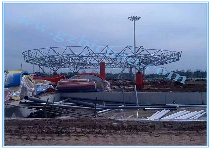 園區(qū)主要功能分區(qū)為:水上活動(dòng)體驗(yàn)區(qū)和旱地活動(dòng)體驗(yàn)區(qū)兩大板塊。整個(gè)游樂園又規(guī)劃為入口廣場(chǎng)休閑區(qū)、商業(yè)風(fēng)情街區(qū)、科技演藝觀景區(qū)、休閑沙灘活動(dòng)區(qū)、濱水隔離綠地區(qū)、密林綠地休憩區(qū)、休閑濱水觀景區(qū)等七大區(qū)域