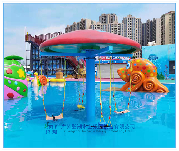 與蘑菇噴水類似,但此款設(shè)備添加了小孩喜歡的秋千。非常吸引孩童。兒童戲水池高人氣產(chǎn)品,廣州碧潮設(shè)計(jì)。歡迎來電咨詢。