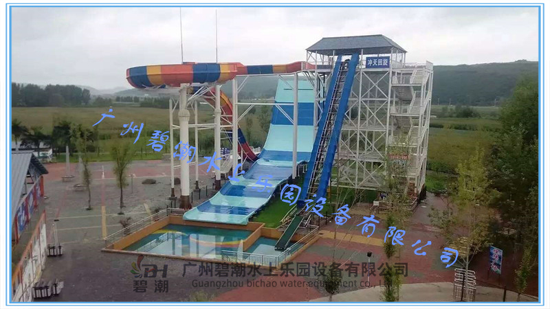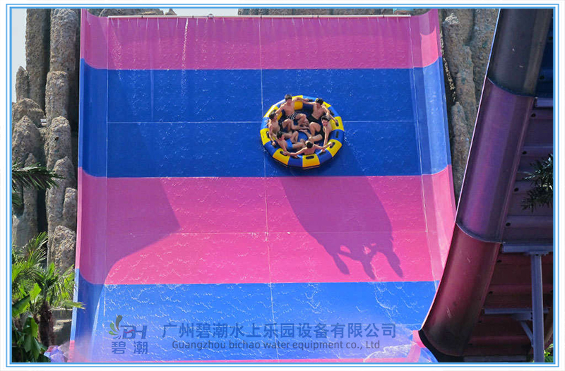 水上樂園設(shè)備沖天回旋滑道是受廣大客戶歡迎的大型滑道之一,可供四人同時游玩。在重力作用下,游客從12.5米高的平臺乘坐四人皮筏從引道急速下滑,乘客會有失重的感覺。然后在慣性作用下,沖上滑梯對面,最后在慣性作用下徐徐滑向落水池。我們另有帶螺旋引道的沖天回旋供廣大客戶選擇,這種更能帶給游客更多驚喜。