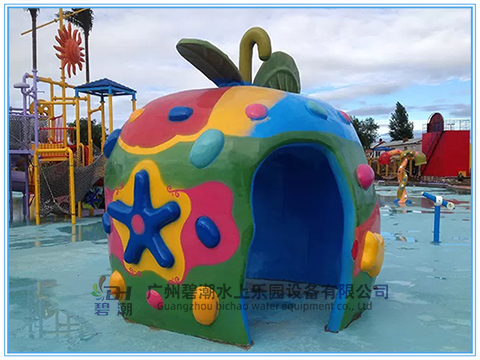 水上樂園設(shè)備戲水小品蘋果屋造型優(yōu)美,是成人和兒童在炎炎夏日暫時休息的好去處。